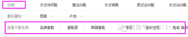 在产品分类页面,或者搜索结果页面,都会出现1688系统推荐的一些相关度比较高的关键词。