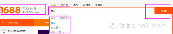 在1688的首页或者分类页面,主搜索框中输入产品名称或主关键词,出现比较热门的关键词词汇,这些词汇可以作为标题关键词的参考。