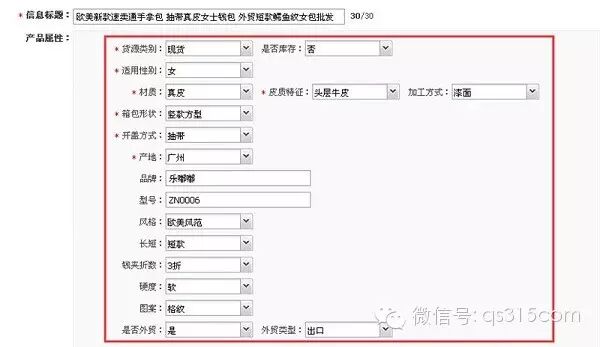 在发布产品时,首先必须选择正确的发布类目,选择并填写完善对应的产品属性信息,更有利于产品的相关性排名。将对应的属性词来作为自己产品的关键词或长尾关键词。